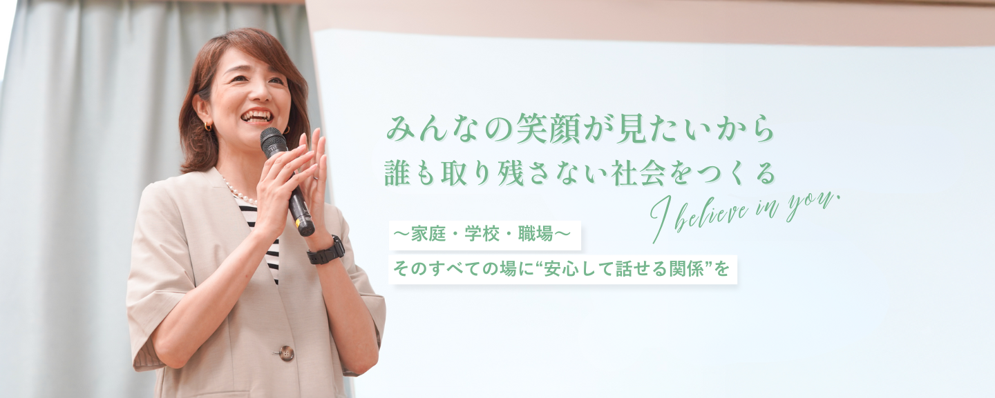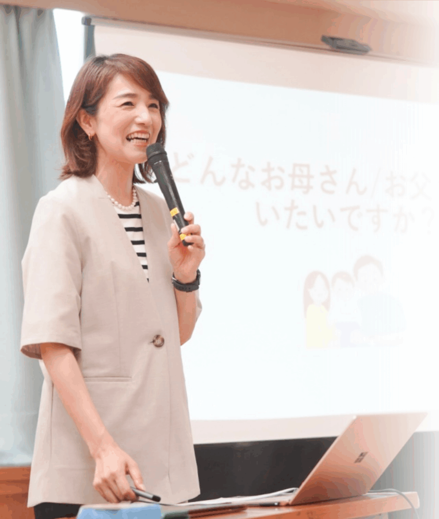 現在は個人や親子、組織に向けて、自己受容や信頼関係を育むコーチングや講座を展開し、コーチ育成や自治体セミナーにも登壇。教育現場での講演も200回を超える。