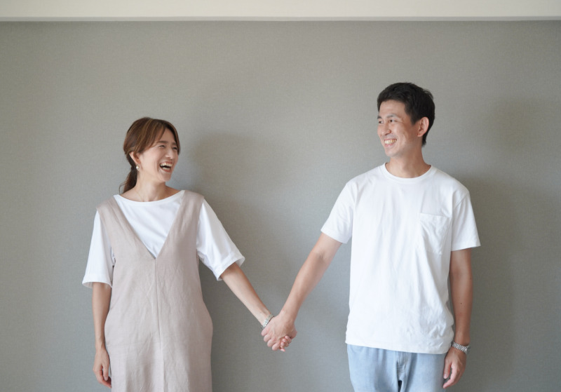 手をつないで歩きながら