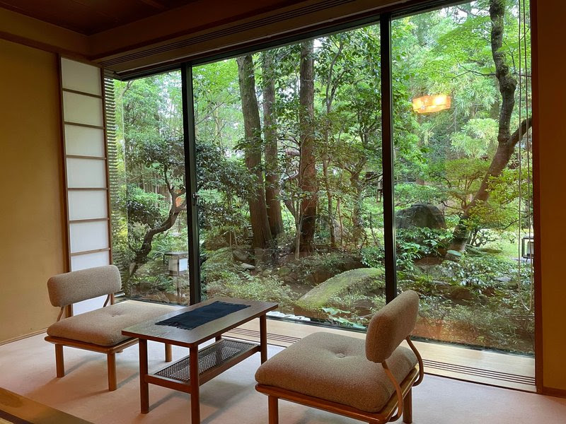 お宿は和風の庭園がついている